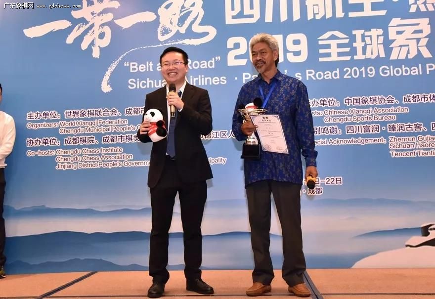 由世界象棋联合会、成都市人民政府主办,中国象棋协会、成都市体育局承办,成都棋院、成都市棋类运动协会协办,四川航空股份有限公司独家冠名的“一带一路”四川航空·熊猫之路杯2019全球象棋双人赛圆满落幕。赛后举行了颁奖仪式。